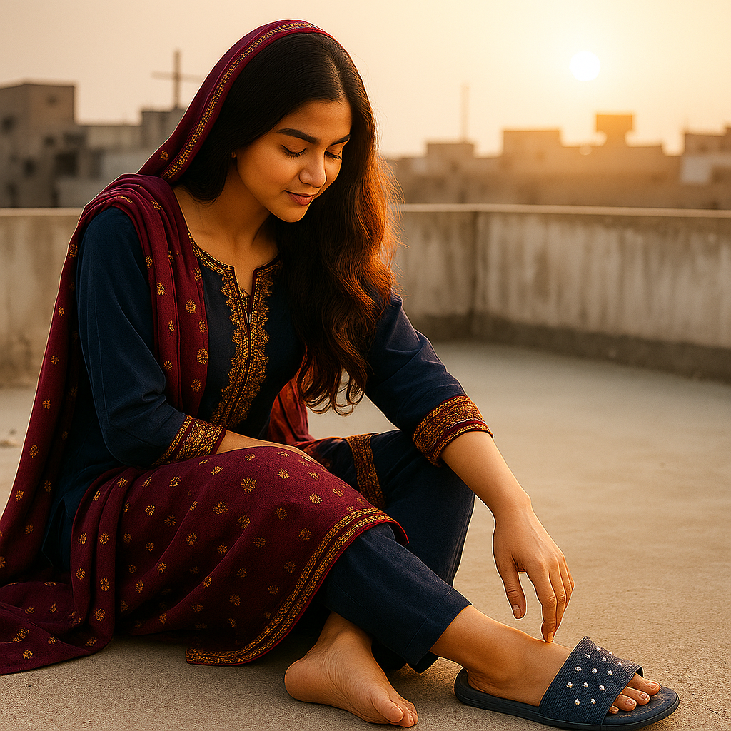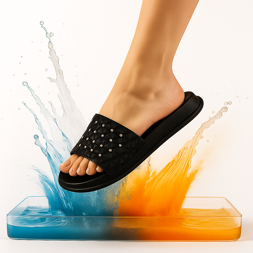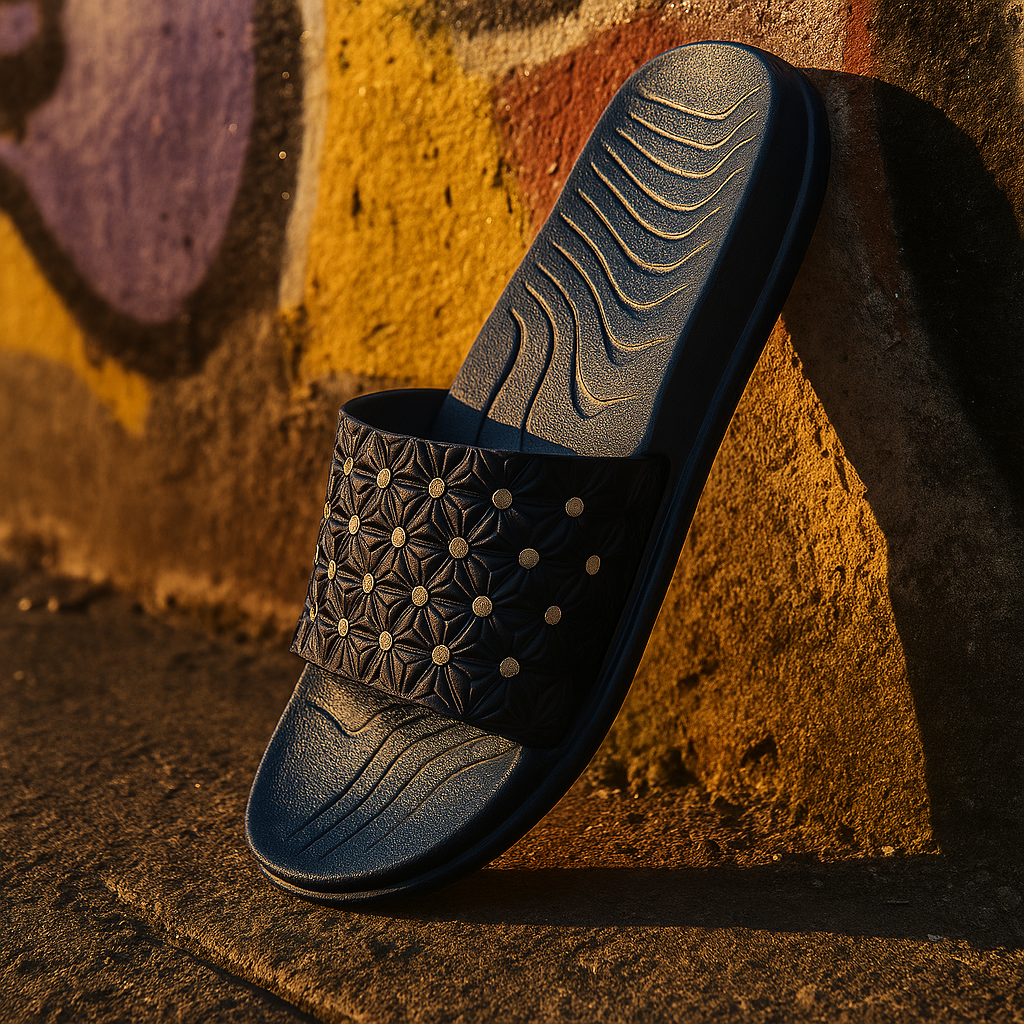 Step into confidence with the Texla CoverUp Bold Studded Slippers – where street fashion meets unbeatable comfort. Designed in a striking midnight blue shade with an elegant diamond-texture strap and silver stud detailing, these slippers redefine everyday style. Whether you're relaxing on the rooftop, walking through the city, or chilling with friends, these slippers make sure you stand out with every step.