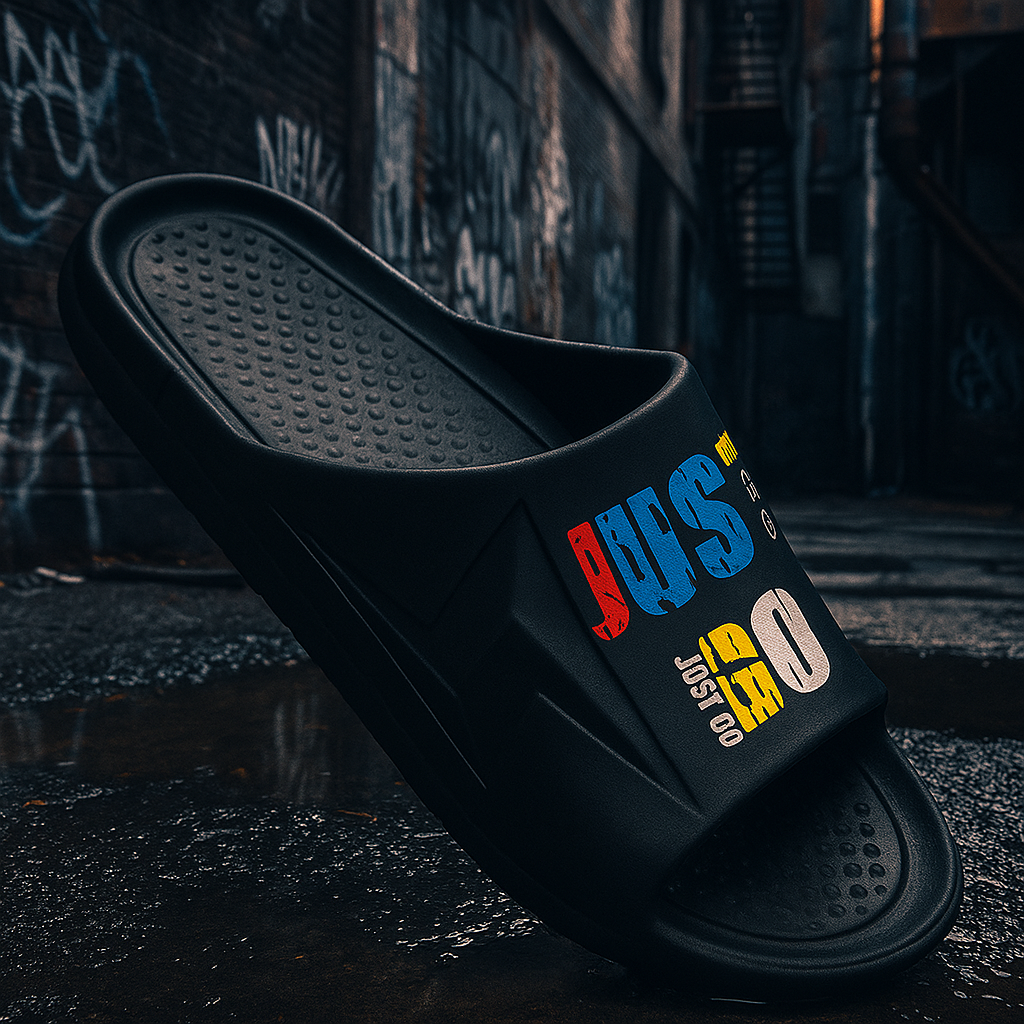 Step into bold street style with the Coverup Footwear Urban Bold Slide. Featuring vibrant multicolor typography and an ergonomic design, this slipper combines everyday comfort with a punch of personality. Perfect for casual walks, urban adventures, and all-day wear.